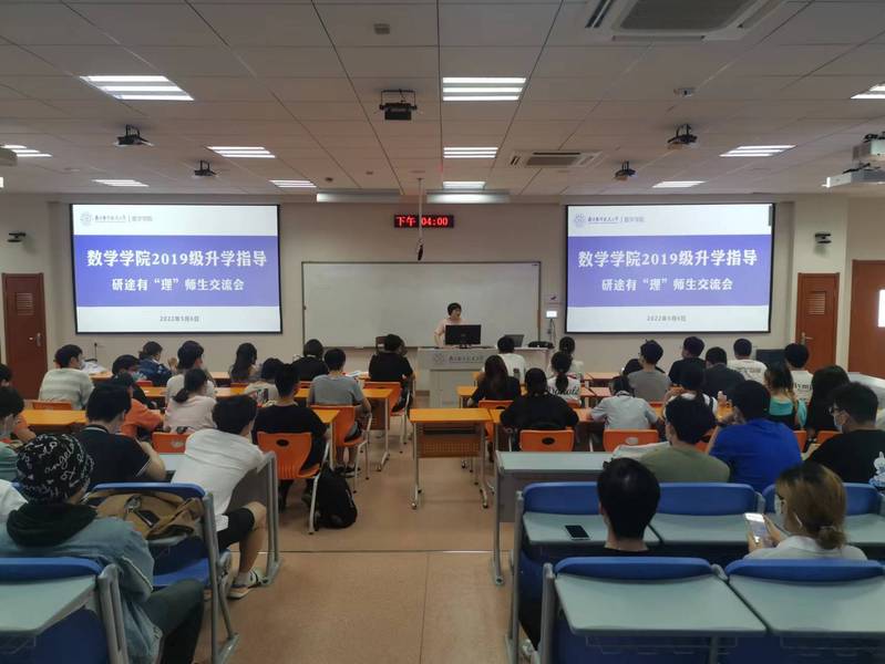 王正盛、蒋辉从不同专业切入,全面介绍了学院各专业情况和毕业生升学、就业前景。针对保研和考研学生,在学习成绩、科创项目等方面给出了意见建议。蒋辉告诉学生数学是一门发展前景广阔且充满活力的学科,就业前景广泛。王正盛提醒学生要对自己的个体情况要有理智、科学的认识,同时以十足的努力付出备考。