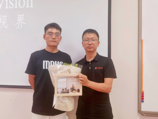 在分享会的最后,在场同学积极提问,宋智广就如何提高数学应用能力和如何做好职业规划向同学们提出了宝贵建议。他建议同学们在打好专业基础的同时,也要多参加科创项目,提升自己的实践能力。他还强调了坚持学习、勇于探索的重要性,鼓励同学们要充分认识到数学的重要性,努力提升自己的数学能力,为未来的职业生涯打下坚实的基础。最后,2023级学生代表为宋智广送上了一份特别的礼物,表达了对学长的敬意和感激。在场的部分毕业生也投递了简历。