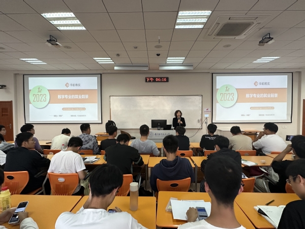 在谈到数学专业的就业前景时,宋智广提到“工业软件是工业的基石,数学是工业软件的基石”,企业对数学专业人才需求的比例在逐渐上升,并将同学们所学的《数学分析》、《高等代数》等基础课程的理论知识与岗位所需技能相对应,让同学们更直观的了解到自己未来可能的就业方向。同时,宋智广从用人单位的角度为同学们分析了现阶段需要提升的个人能力,鼓励同学们根据自己的兴趣和特点,选择适合自己的发展方向,他还分享了个人的学习感悟,通过回答“如果回到学生时代,我会做什么”的问题,鼓励同学们努力学习专业知识、寻找到自己的方向,并建议同学们要善于沟通和合作,培养良好的团队合作精神。