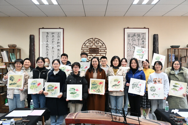 随后,校工会党员、中国书法家协会会员郭洪豹带领两支部党员同志共同画“廉”。他为师生们细细讲解“莲作品”中的“廉文化”时代演变,带领师生们感受廉洁文化不断丰富的内涵。随后,师生党员们手持画笔,共同在画布上勾勒出了形态各异的莲花。莲花在中国传统文化中象征着高洁、廉洁的品质,书画作品春风化雨、润物无声,以“莲”传“廉”。两支部党员同志在书韵墨香中感受廉洁文化的洗礼,涵养风清气正的组织氛围。