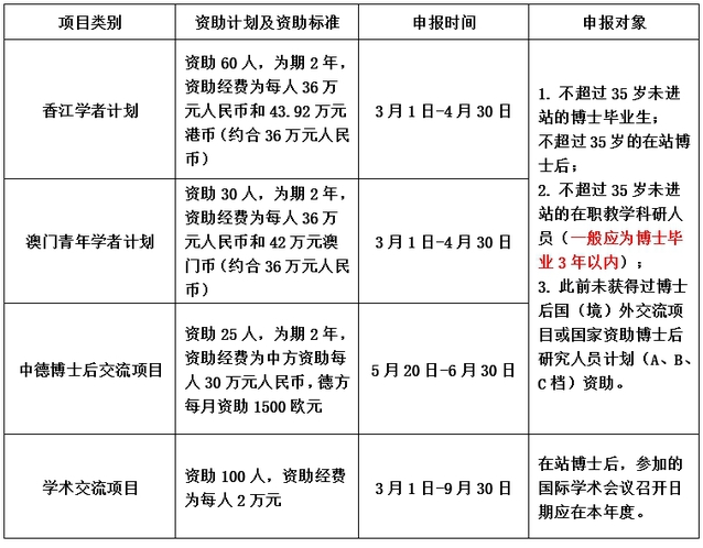 为培养高层次创新型青年人才,加强博士后学术交流与合作,2024年2月22日,全国博士后管委会办公室下发《全国博士后管委会办公室关于开展2024年博士后国(境)外交流项目申报工作的通知》(博管办〔2024〕34号),请各单位在应届博士毕业生、在站博士后、青年教师等群体中广泛宣传和动员,吸引更多优秀博士依托欲神幻想 申报以上项目,并组织申报。申报一览表如下: