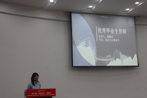 答辩结束后,周佼佼为活动致辞。她对高年级同学取得的成长和收获表示祝贺。她提到,答辩既是高年级同学的成长分享会,也是低年级同学的宝贵学习机会。她鼓励低年级同学从优秀学长学姐的成长故事中找到榜样、激发动力,争取在未来的大学学习中更有目标,向榜样看齐;更有信心,去创造无限可能;更有方法,稳扎稳打走好大学每一步,去创造属于自己的美好大学学习生活,期待他们未来的绽放。