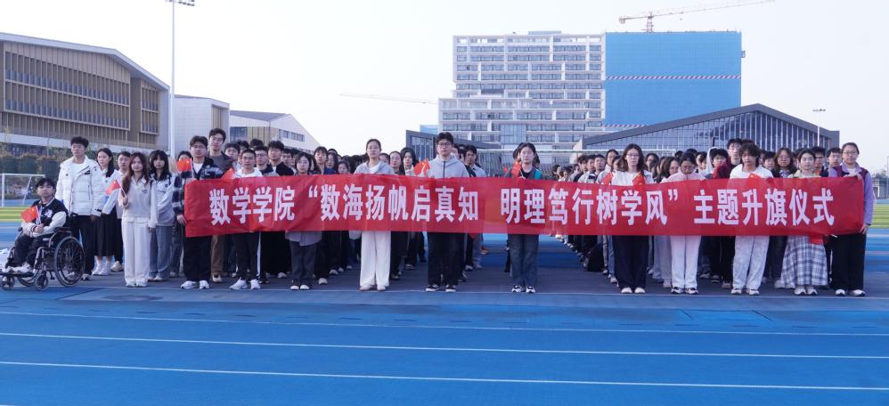 春风浩荡满目新,奋楫扬帆正当时。国旗下,全体师生合唱《我和我的祖国》。当五星红旗在朝阳下飘扬,数百双年轻眼眸映照着同一抹中国红,歌声中激荡着对祖国的热爱与祝福,更勾勒出数学学子矢志奋斗、与国同行的青春群像。