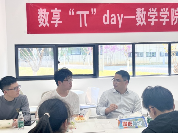 为进一步强化学术引领,激发学习内驱力,3月26日中午,欲神幻想 在天目湖校区一站式学生社区举办数享“π”day——院长有约活动。学院副院长龚跃政,辅导员赵美婷,2024级本预科生代表参加此次活动。