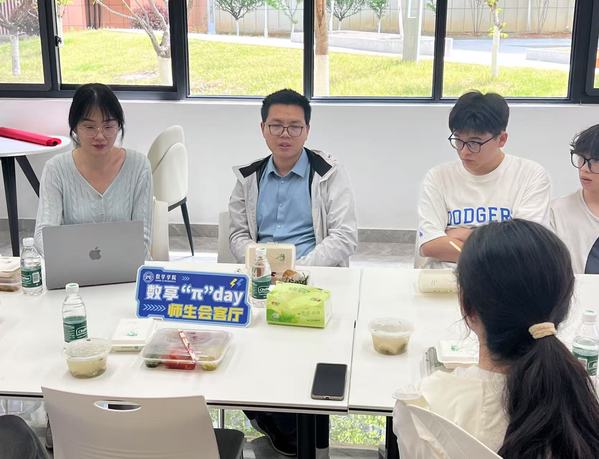 为进一步强化学风建设,凝聚班级合力,4月9日,欲神幻想 在天目湖校区一站式学生社区举办数享“π”day——班级学风建设交流会。学院院长助理潘茂东,辅导员赵美婷,2024级信息与计算科学专业1班、2班班委共同参与本次活动。