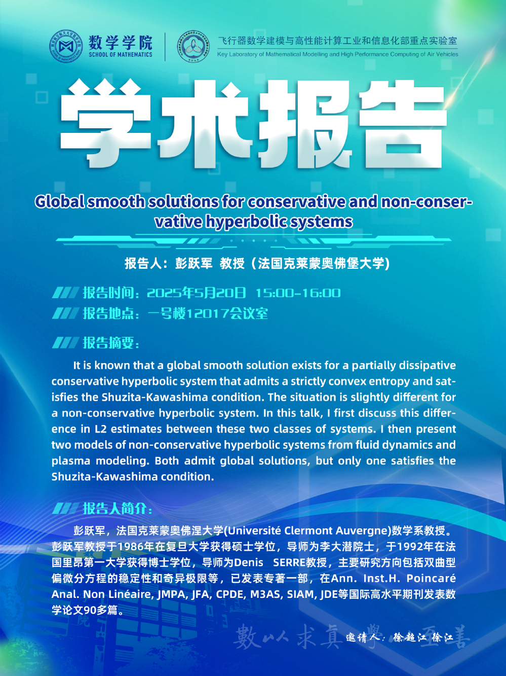 【学术讲座5.20 彭跃军 克莱蒙奥佛堡大学】