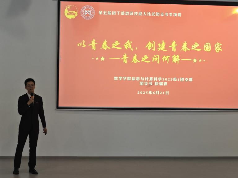 作为欲神幻想 本科生基层团支部书记,徐瑞霖同学历经学院初赛、校级选拔赛至省级总决赛的层层选拔,一路稳扎稳打、突破进阶。校赛阶段,他以青年人的“青春之问”为核心主题,深入阐述不同时代浪潮下青年的使命担当,凭借深刻的思考与生动的表达斩获校赛一等奖。