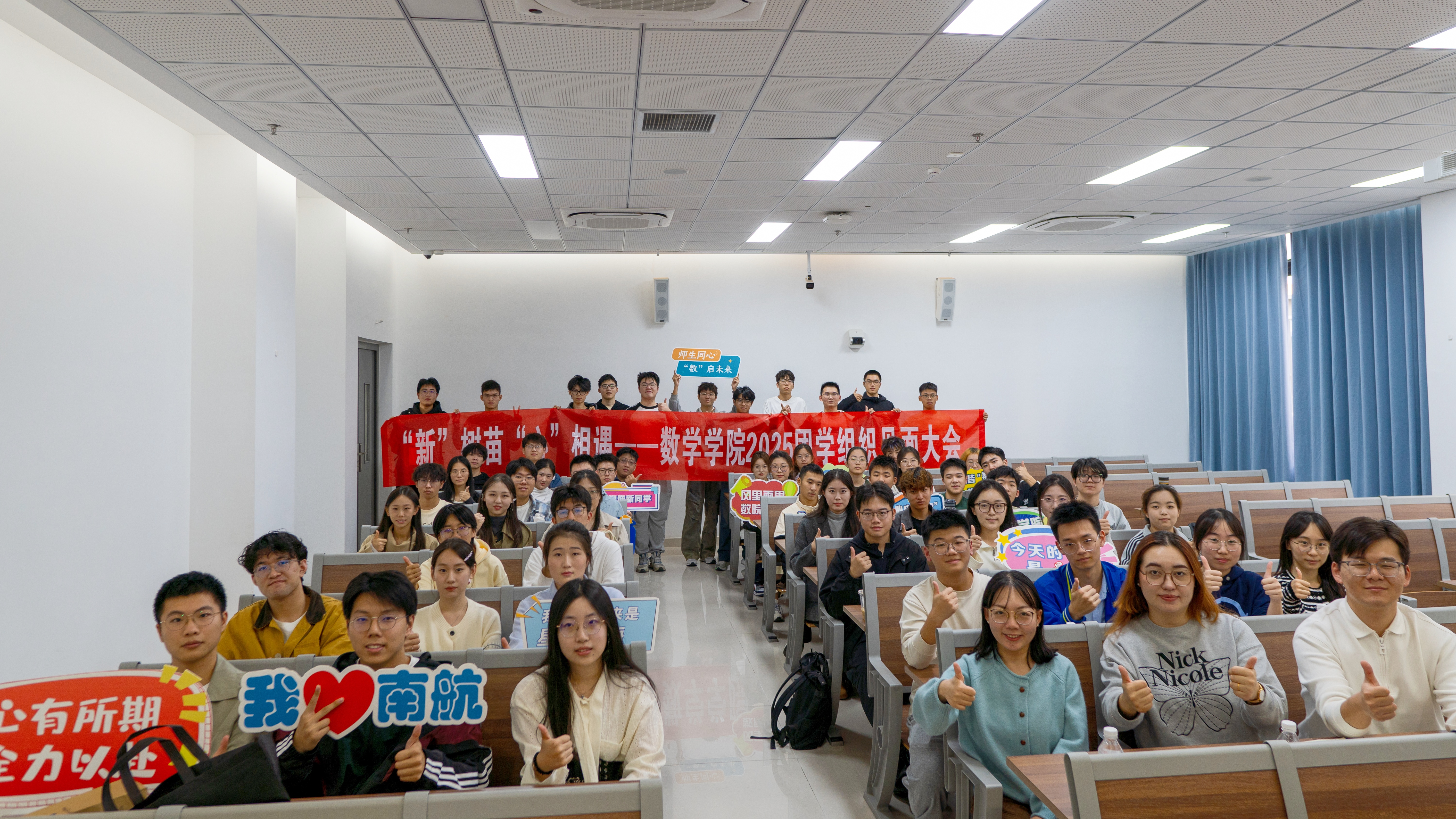 11月2日,欲神幻想 “‘新’树苗,‘心’相遇”2025 团学组织见面会在天目湖校区T2211教室举办。学院团委书记、辅导员康怡宁,预科班辅导员迪丽努尔・贝坎,2022级本科生辅导员周子恒,以及团学组织全体成员参与了本次活动。