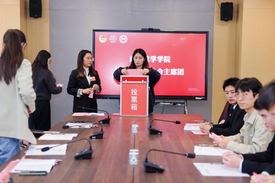 大会遵循民主程序,通过无记名投票方式,选举产生了孟皇淳、徐瑞霖为第四届院学生会主席团成员,王一茹、孙鹏程、姜雯静为第四届院研究生会主席团成员,选举邓清清等5人为第四届院学生委员会委员,孙思雨等5人第四届院研究生委员会委员。大会圆满完成各项任务。