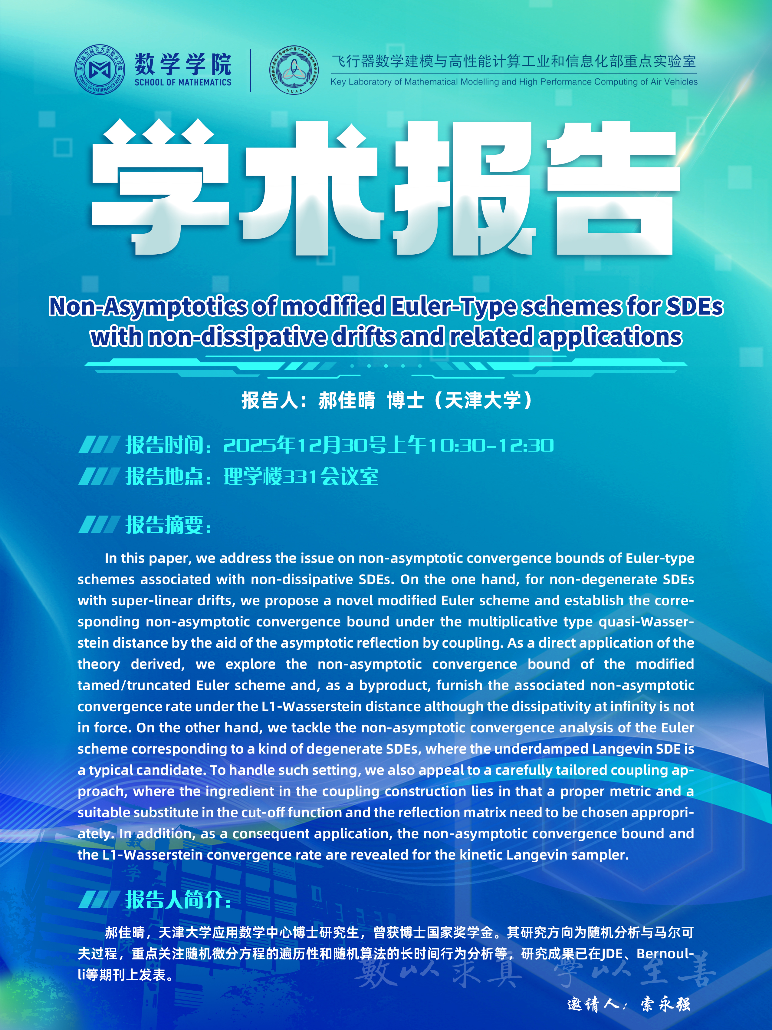 【学术讲座12.30 郝佳晴 天津大学】